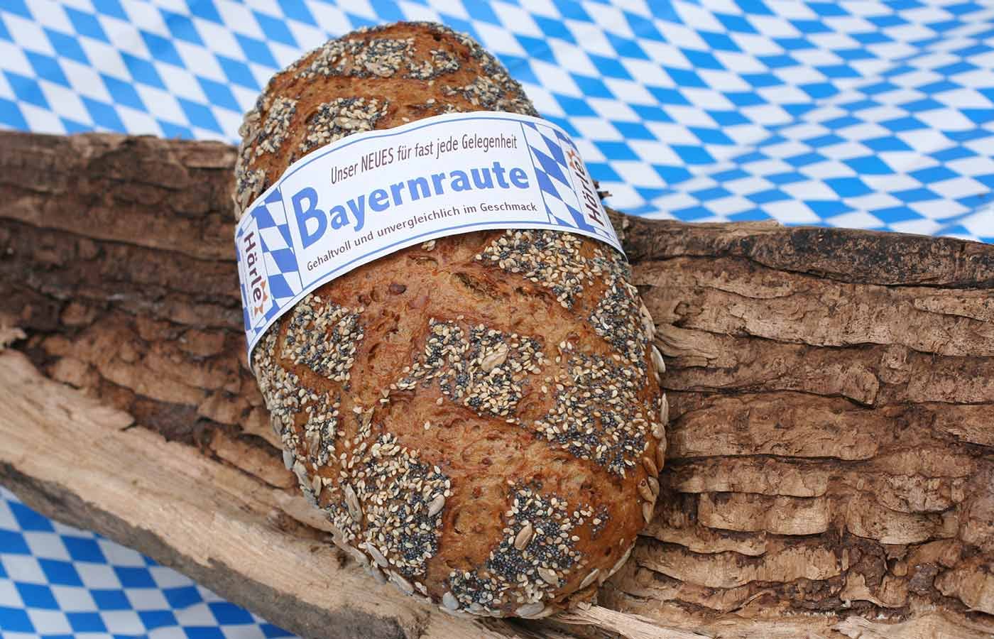 Unsere Bayernraute ist ein Mehrkornbrot mit Quark und Walnüssen, das mit unserem eigenen Natursauerteig gefertigt wird. Für die lange Frische sorgt der Quarkanteil dieses einzigartigen Brotes. Markantes Kennzeichen ist die Rautenkruste die entscheidend für die Namensgebung war.